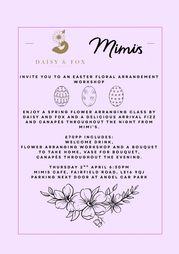 Join us on Thursday 2nd April for a flower arranging workshop with Daisy and Fox Floristry.